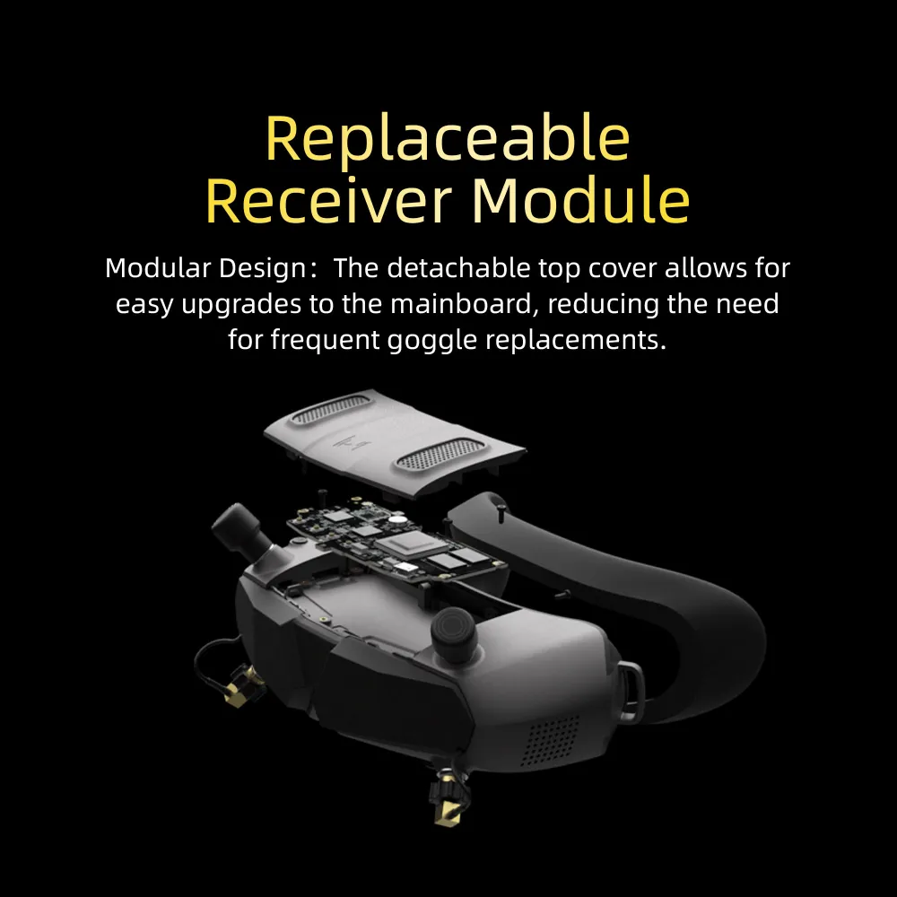 The cover above the goggles can be opened for easy replacement of new receiver modules, providing pilots with a cost-effective way to upgrade their goggles. Meanwhile, we are developing the next generation receiving module, which can achieve a breakthrough in flight distance, expected to reach 20 kilometers, and develop a sustainable development strategy.