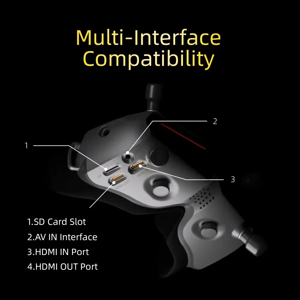 The HDMI input expands the range of devices that can be used with the goggles, providing more flexibility and convenience. The HDMI OUT interface can be connected to other display devices to share your flight footage with pilots in real time.